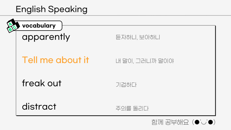 | [Day 5] 매일 영어회화 공부하기 (with Cake 어플) - It's complimentary (0) | 2020.10.25 |