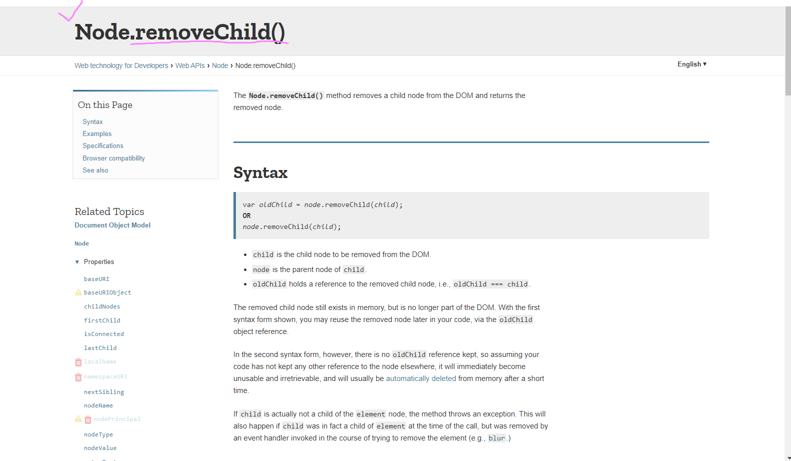 https://developer.mozilla.org/en-US/docs/Web/API/Node/removeChild